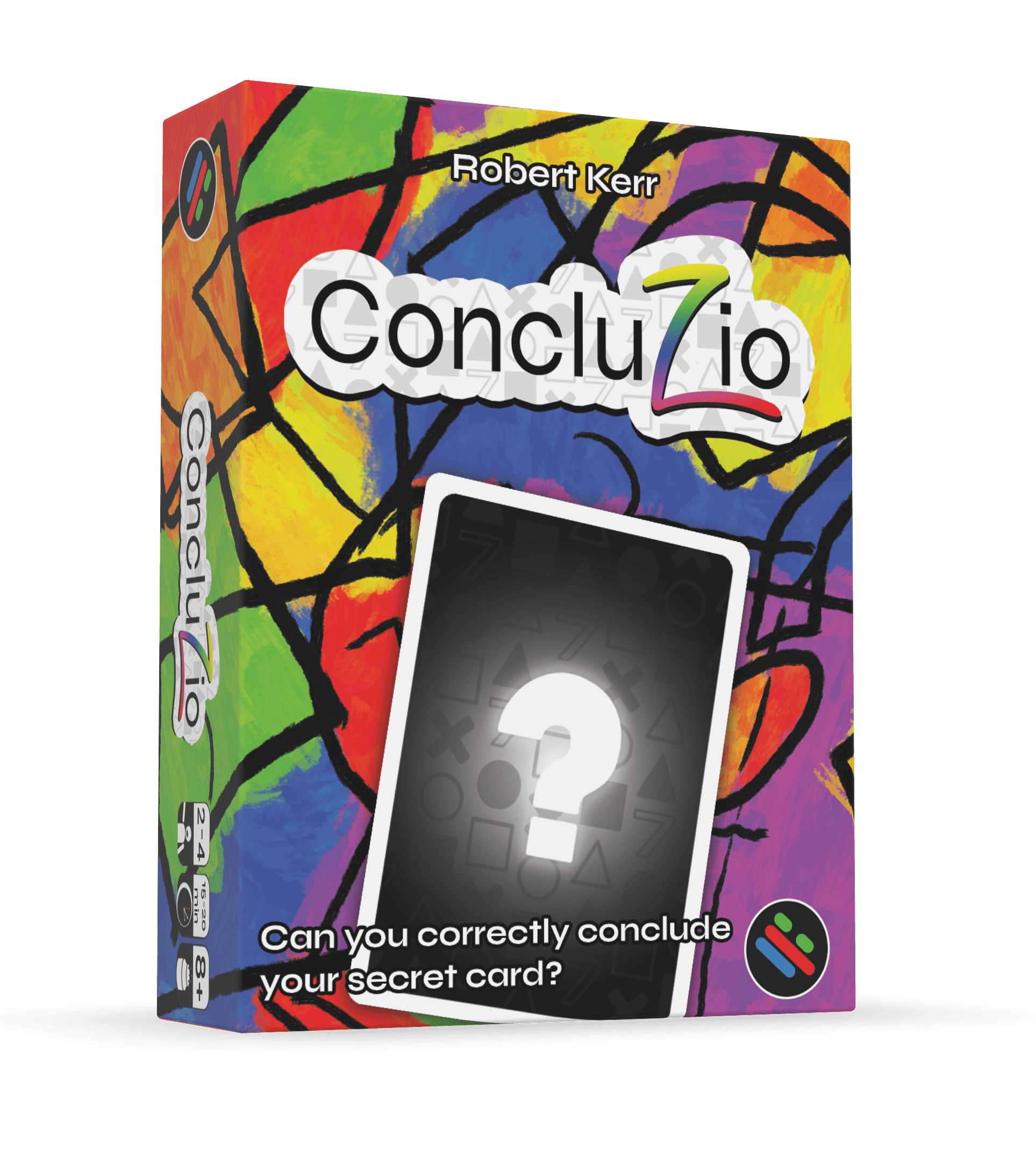 Put your deduction skills to the test in the family-friendly card game, Concluzio! Race against your opponents and be the first player to correctly guess your secret clue card. Use logic and reasoning to correctly figure out the shape, number, and color of your secret card. Tension and panic will set in as players acquire more cards, signaling that someone is close to coming to a conclusion. Will you take a risk and guess early? Or will you acquire more cards to make your guess more certain? If you guess correctly, you win! If you’re wrong, you’re out!