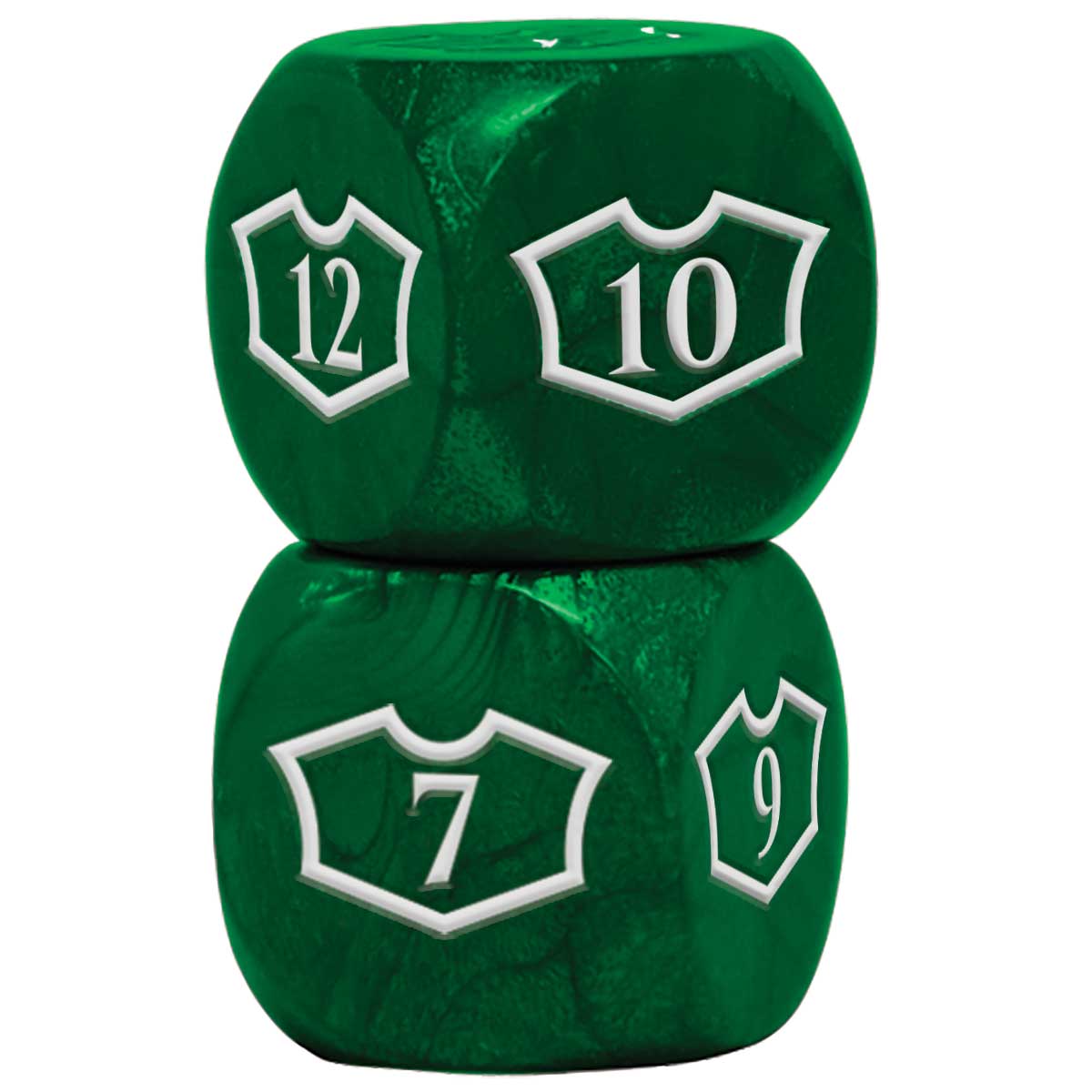 Show your Loyalty with the updated Deluxe Loyalty Dice for Magic: the Gathering! Each face features the iconic "loyalty" outline with numbers 1-6 on two dice and 7-12 on the other two dice, allowing you to save up for that ult with a single die face representing your progress clearly. Each set includes four (4) six-sided dice, measuring 22mm, packaged in a reusable storage box. Rounded corners allow dice to roll further for better randomization and protects gaming table surfaces from dents or marks.