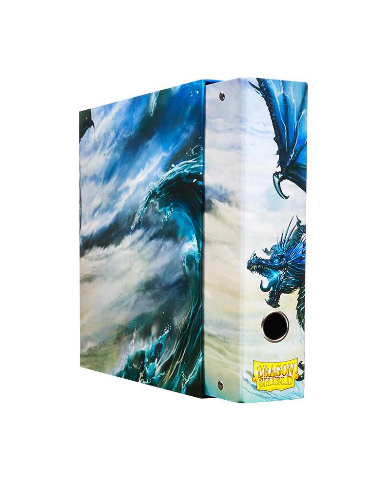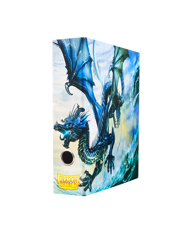 Beautiful full wrap-around artwork featuring the Blue dragon, Kokai. Artwork by Godfrey Escota. The ultimate way to protect and display your collection. The Dragon Shield Slipcase Binder is a high quality binder with a solid 3D ring mechanism. The sturdy binder case makes sures the binder stays upright on the shelf, even with many cards inside. The binder includes a compressor bar, which keeps your binder pages in check and it features a tough and easy-to-clean high-gloss exterior.