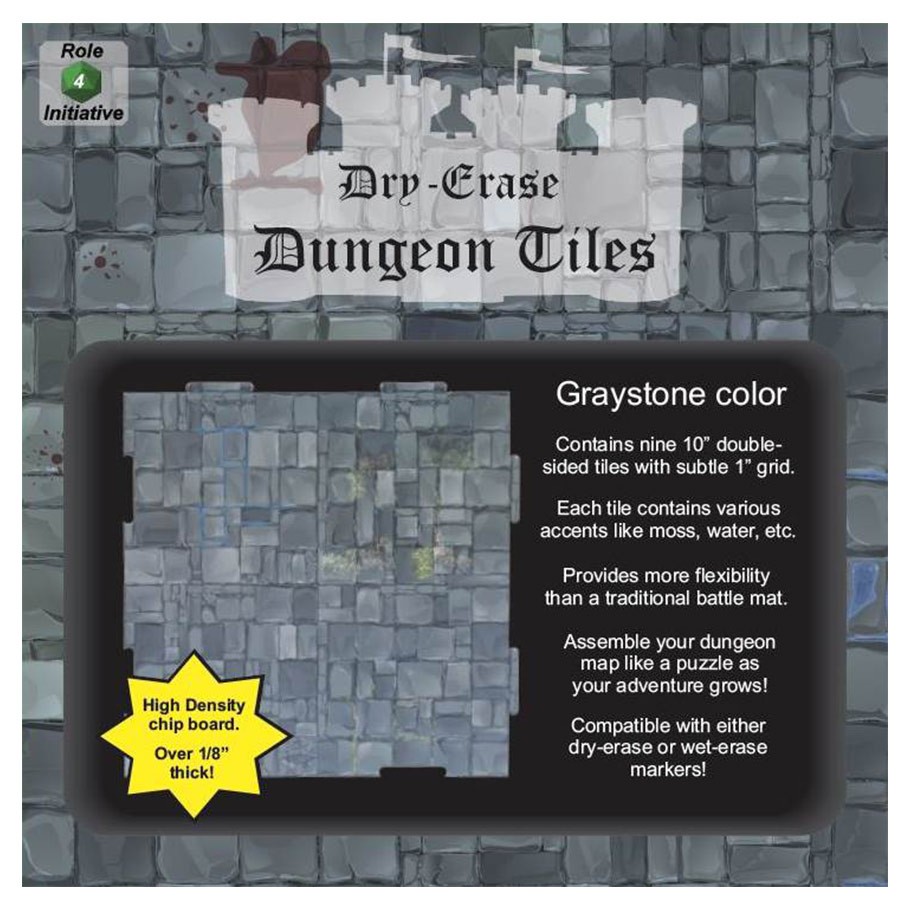 Not only do these tiles provide a more realistic stone floor appearance, they are accented with various dungeon floor features that include broken stones, moss, water, blood, and dirt that add character to your dungeon maps. R4I has taken the realistic visual effects even further by implementing a "hidden grid" by rendering a floor of varied size and shape stone tiles, yet still leaving a subtle representation of the traditional 1" grid. Compatible with both dry-erase and wet-erase markers. More flexible than a traditional battle mat, start your game with a single tile and connect the tiles as the adventurers explore new areas. Never again give away clues as to which way the corridors may lead due to starting placement on a large mat. The interlocking tile modularity allows the Dungeon Master to draw many details of an area at his seat and then simply hand the tile to the nearest player to connect. Take advantage of the double-side feature by pre-drawing map features before the game and only revealing tiles as they are encountered. You can draw one side as it appears naturally, and the other side that shows all the hidden traps and magic features when they are triggered.