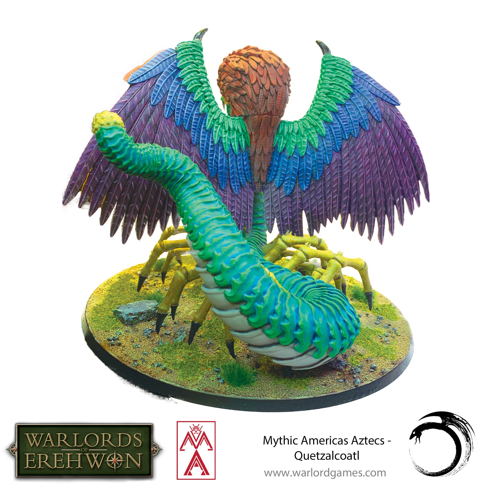 Quetzalcoatl 'kwets-əl-kō-ä-tu̇l– Unlike other monstrosities, the Quetzalcoatl is a powerful spellcaster. With special rules of Fast and Flies, the winged serpent can move around the field with ease and reach most parts of the battlefield with its spellcasting ability. The Quetzalcoatl’s multiple melee attacks, high stats and Venomous ability makes the Quetzalcoatl a force to be feared in melee as well.