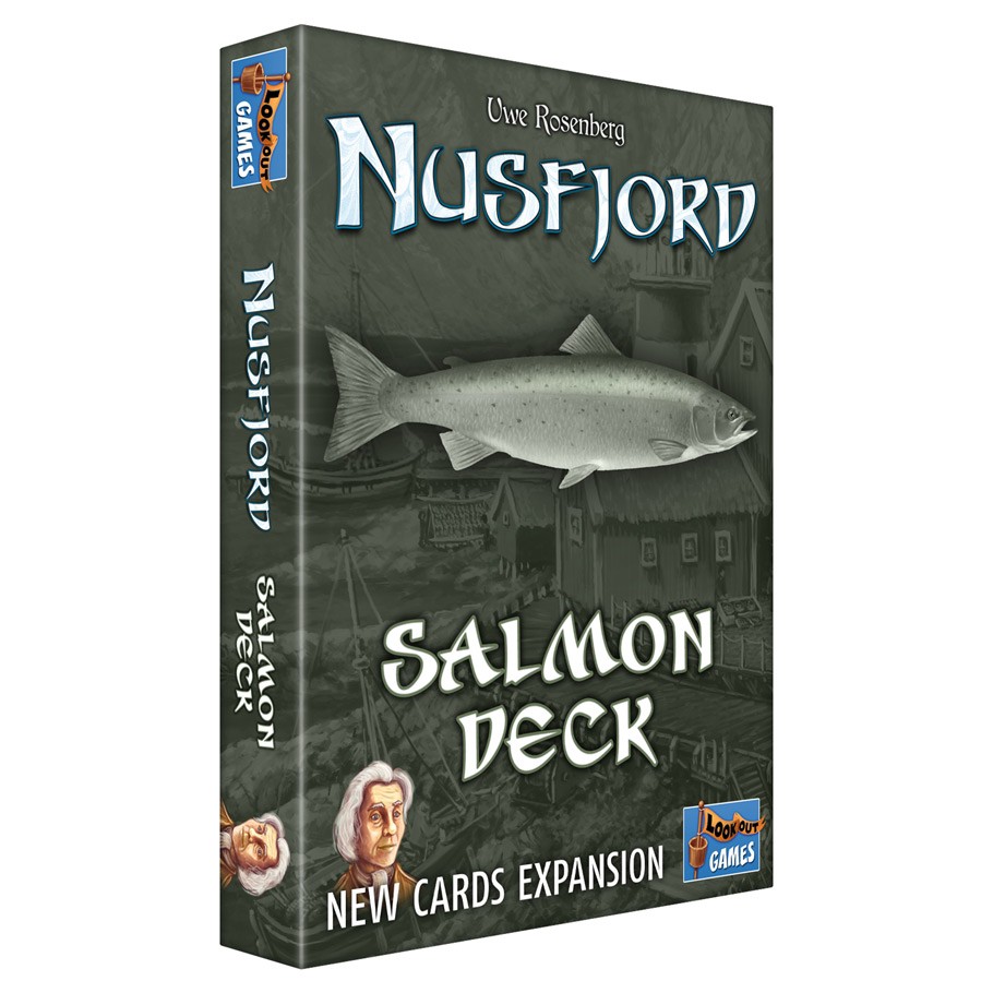 The Salmon Deck ist the second expansion for Nusfjord. It introduces 44 new A-, B- and C-Buildings for advanced players, requiring a much deeper understanding of its mechanics than the base game decks. Additionally, the expansion contains metal coins, which replace the base games cardboard coins for a better feel and look of the base game as well as a new elder.
