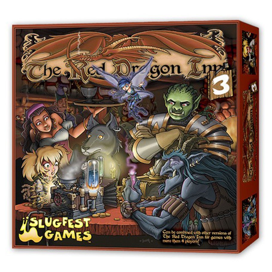 Once again you and your adventuring companions have spent all day slogging through the Dungeon, killing monsters and taking their stuff! Now you're back in town, healed up, cleaned up, and ready to party at the Red Dragon Inn with four new members of the party! Drink, gamble, and roughhouse with your friends. But don't forget to keep an eye on your Gold. If you run out, you'll have to spend the night in the stables. Oh, and try not to get too beaten up or too drunk. If you black out, your friends will continue the party without you... after they loot your body for Gold of course! The last conscious adventurer with Gold wins the game. The Red Dragon Inn 3 introduces four new members of the party and can be played alone or in combination with The Red Dragon Inn and/or The Red Dragon Inn 2 to allow for games of up to 12 players!