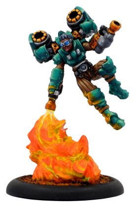 Aline Bennet was once a star ace among Rocketman Corps, as well as a warcaster in training among the Crucible Guard. When the apocalypse came, most of Bennet`s Corps unfortunately perished. Instead of drowning in sorrow, however, Bennet buried her comrades and used their scavenged gear to build herself a new suit of armor, a suit that combined her skills as a warcaster with that of a high flying rocketman. Despite her tragedy, Aline is cheerful, altruistic, and dedicated to making the wastes a safer place. She patrols the ruined Iron Kingdoms in search of evildoers, whom she happily eradicates with her paired flamethrowers.