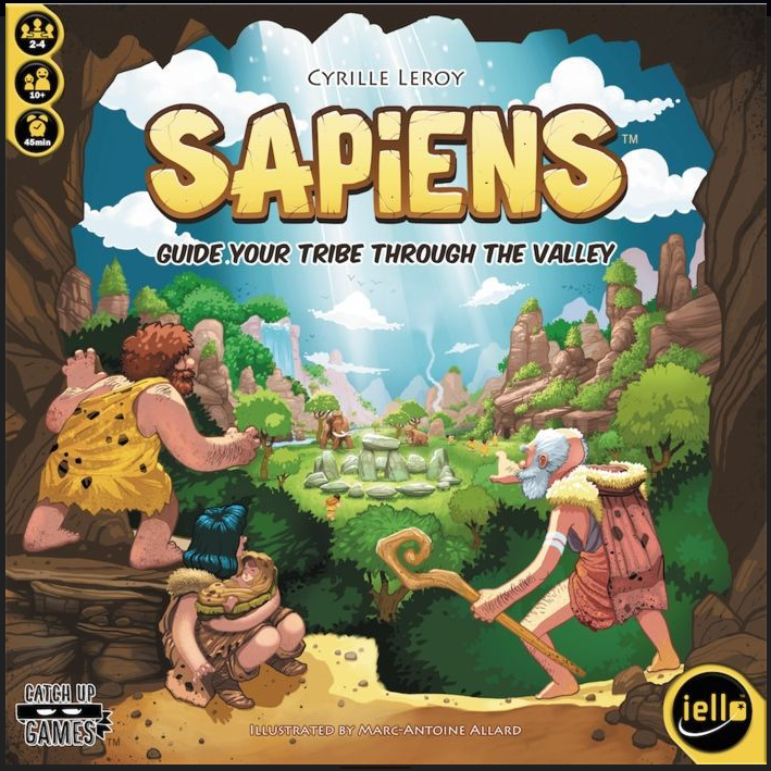 Sapiens is a short and easy-to-learn tile-placement game that can prove much deeper than it seems for gamers. Each player has a personal game board that represents the valley on which they will play tiles to determine the journey of their tribe through several prehistoric life scenes. Their aim is to gather food points on the plains and in the forests of the valley and to get shelter points for reaching caves in the mountains. A player's turn consists of two steps: