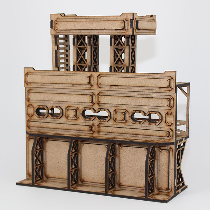 Modular fortress wall appoximately 8.25 inches long with raised guard tower and ladder. Features four playable levels (ground, 1st, 2nd, and tower). Wall is contructed of two layers MDF and is detailed on the inner and outer surface. Designed for 28mm miniatures. Made of sturdy 3mm MDF board. Kits ship unassembled and unpainted.