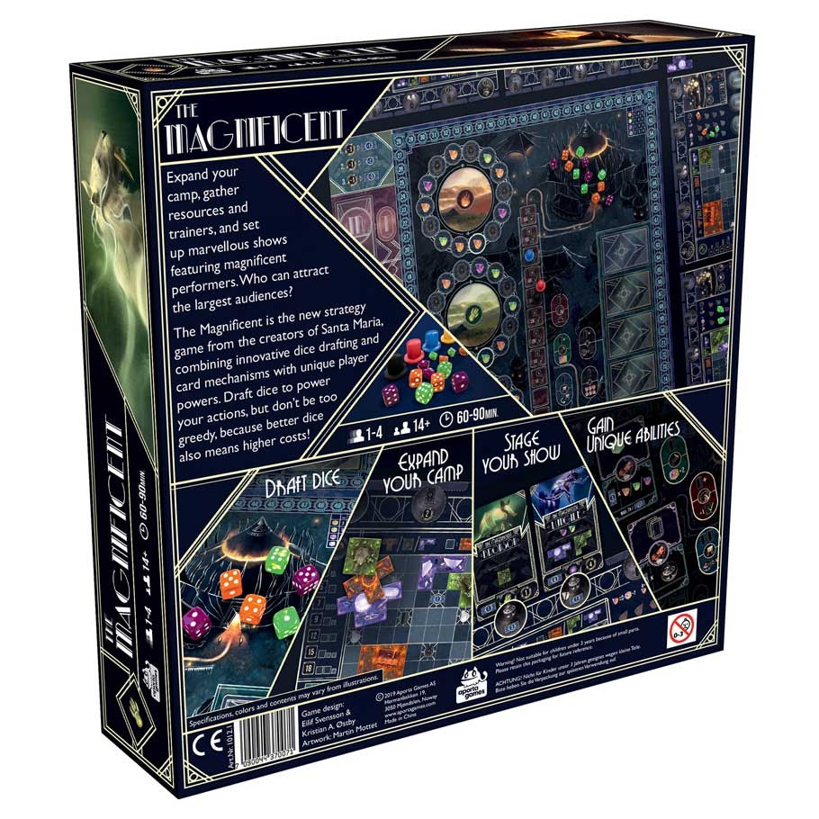 The Magnificent is a new unique medium complexity strategy game from the designers of Santa Maria, featuring a unique take on dice drafting and many paths to victory.