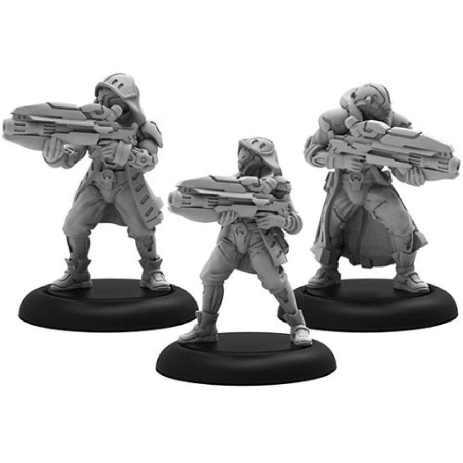 Three-model squad. Any Cypher cards on a unit hit by a Hex Cannon immediately expire. Their Mimetic Cloaks give them Stealth while charged. The Vassals’ Phase Sequencer mechanika enables them to spike to move through walls, buildings, and other models.